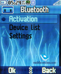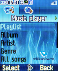 Цвет интерфейса – Lime, Red, Black, Light Green. Никаких изменений это не привносит в вид окна плеера, только в его цвет. Проигрывание через Bluetooth – автоматически плеер не передает музыку на соединенное Bluetooth-устройство, только если вы активируете соответствующий режим. Тут наблюдается сходство с аппаратами от Motorola. Действует перескок между композициями, регулировка громкости, но нет отображения названия композиции на внешней гарнитуре (DS970 от Sony Ericsson). Музыка должна храниться на карте памяти в папке Music, иначе аппарат не обнаружит ее. Есть деление по жанрам, исполнителям, альбома, недавно проигранным композициям. Любую композицию можно добавить в My Star List, это своего рода избранное. В плейлисты можно добавить различные композиции. В целом плеер работает без особых проблем, соответствует другим аппаратам. В режиме ожидания на экране показывается название песни и имя певца, но не время. Перемотка прогрессивная. Аппаратные клавиши плеера позволяют управлять проигрыванием, запускать на экран сам плеер (долгое нажатие кнопки проигрывания). Инструменты. Здесь собраны основные функции, которые многие могут отнести к дополнительным. Bluetooth. Настройки bluetooth крайне просты, можно спарить телефон с другими устройствами, поддерживается профиль A2DP. Работа bluetooth не вызывает нареканий (версия 2.0 + EDR, чипсет Broadcom BCM2045).