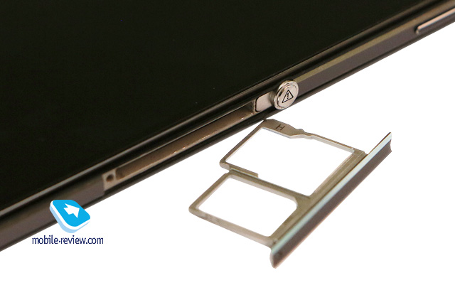 Хочу отдельно отметить то, что это громкий, голосистый аппарат. Но главное, что впервые в мобильном телефоне есть басы, которые слышны в режиме громкой связи, слушать музыку на IDOL 4 приятно, и в небольшой комнате телефон вполне может заменить беспроводную колонку. В Alcatel сделали большой упор на музыкальную составляющую, о чем мы поговорим ниже, тем более что есть о чем рассказать. Телефон можно держать любой стороной в руках, переворачивать как угодно. На каждом торце есть микрофон, а каждый из динамиков может использоваться во время разговора. При этом можно и отключить эту опцию в меню. На левой боковой стороне находится слот для карты памяти и nanoSIM-карты, вместо карты памяти можно установить вторую SIM-карту, радиомодуль в телефоне один. Там же находится клавиша включения/выключения, она вынесена ближе к верхнему торцу. Это не совсем привычно и удобно, но тут дело в привычках, и через какое-то время вы уже не ощущаете неудобства.