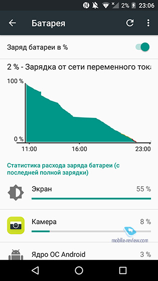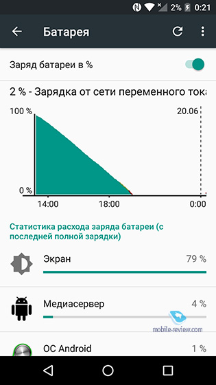 Со временем работы не все однозначно, после теста на проигрывание видео, в котором телефон на максимальной яркости продержался 6 с небольшим часов, я не ожидал от него чего-то этакого.