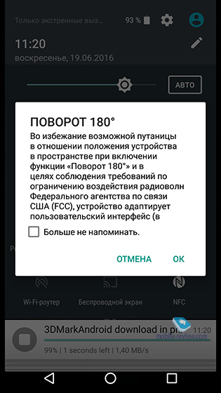 АккумуляторЕмкость аккумулятора – 2610 мАч, он Li-Ion, поддерживается функция Quick Charge 2.0. К сожалению, в комплекте идет обычное зарядное устройство (5В, 2А), им полная зарядка аккумулятора осуществляется за два часа, в то время как быстрой зарядкой можно зарядить аппарат за вдвое меньшее время.