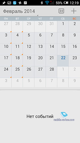 Без разблокировки аппарата вы можете посмотреть прогноз погоды на текущий день. Пролистнем экран вправо, тут будут календарь и список дел для текущего дня (ввести дела или посмотреть другой день не выйдет). Также можно посмотреть статусную строку, она доступна и при заблокированном экране, если нет ключа безопасности или цифрового кода. Кардинальное отличие подхода Alcatel от других оболочек в том, что здесь решили отказаться от отдельного меню для всех приложений. На главном экране находятся виджет погоды, несколько иконок. Это точка отсчета. Листаем экраны влево, и тут будут виджеты, которые вы установите. Идем вправо, и это будут иконки программ, также некоторые программы уже убраны в папки, это сделал производитель. К подобной организации привыкаешь моментально, она в чем-то логична и точно имеет право на жизнь.