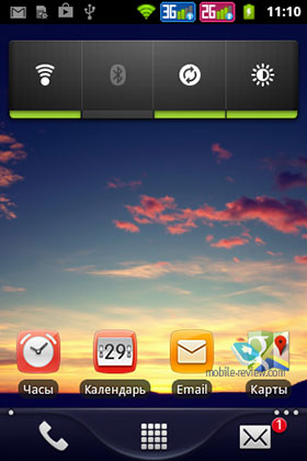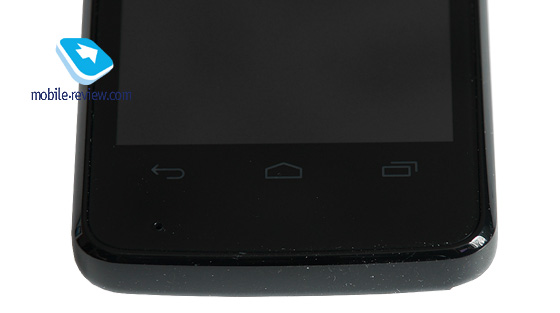 При каждом касании сенсорной клавиши аппарат вибрирует, вибрацию можно отключить в настройках смартфона. Над экраном расположены разговорный динамик, световой индикатор и датчик для автоматической регулировки уровня подсветки экрана.