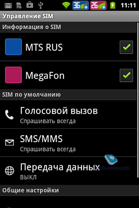 Реализация работы двух SIM-картВ устройстве один радиомодуль, соответственно, если вы говорите с использованием одной SIM-карты, другая в этот момент недоступна и при звонке на нее человек услышит фразу «абонент недоступен». В настройках можно назначить для каждой из «симок» цвет и изменить название. При звонке или отправке сообщения появляется всплывающее меню с предложением выбора SIM-карты, с помощью которой будет совершено действие. В настройках также можно отключить появление этого окна и просто выбрать SIM-карту «по умолчанию».