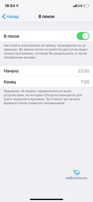 Также в настройках этого режима появился новый переключатель “Отход ко сну”. Если его активировать, то при переходе в “Не беспокоить” по расписанию дополнительно будет затемнен экран, заглушены вызовы, а уведомления, минуя экран блокировки, будут сразу попадать в “Центр уведомления”. Такой вот своеобразный режим “Совсем не беспокоить”. Если вдруг кто не понял, то отличие в следующем: если вы, ложась спать, активируете экран, чтобы посмотреть время, то вы не увидите новых уведомлений, которые потенциально могут вас отвлечь и заставить снова зависнуть в смартфоне. Не пройдут также звонки, если вы их не отключили ранее в других настройках режима “Не беспокоить”. Как выспитесь – посмотрите все в “Центре уведомлений”.
