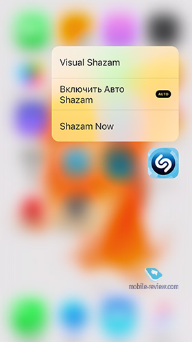 3D TouchВкратце, при сильном нажатии на некоторые иконки появляется дополнительное меню, что сильно облегчает жизнь, привычка к 3D Touch появилась даже за те часы, что я использую 6S. Например, взять Shazam, обычно ведь нужно его запустить, нажать для распознания трека, здесь же сразу переходишь к идентификации. Уровень нажатия можно настроить в меню, по сравнению с часами Apple Watch все проще и понятнее, так как экран больше. При нажатии вы получаете этакое прикосновение к пальцу со стороны iPhone, мягкая вибрация - на часах это и вправду можно назвать прикосновением, здесь тоже. Функции Peek и Pop работают так. Первая открывает предпросмотр, как в OS X, только здесь можно «предпосмотреть» фото или письмо, вторая (нажимаем сильнее) открывает файл. Вам прислали ссылку в сообщении, тоже есть предпросмотр, захотели - открыли в Safari. Все происходит с разным усилием нажатия, и все это очень естественно.