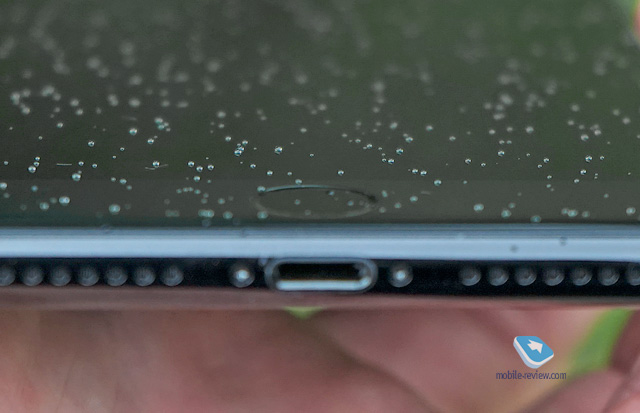 Защита от водыСразу же после начала использования обращает на себя внимание иная конструкция слота для SIM-карты (nanoSIM), разъема Lightning. Первый словно не заходит до конца, нет привычного щелчка. Ну а штекеры в разъеме сидят очень плотно, некоторые приходится вытаскивать с усилием. Все это из-за прокладок и других особенностей корпуса, защищенного в соответствии со стандартом IP67. Что это значит? Это значит, смартфон не надо использовать в воде, но он выдержит брызги, если его полить из бутылки, если случайно уроните в бассейн и тут же достанете. По сути, это базовый уровень защиты. Наверняка в компании соберут статистику, и следующий аппарат будет иметь полную защиту от воды, как и часы Apple Watch series 2.