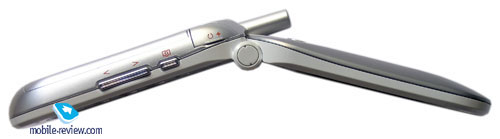 A VGA-camera objective slightly sunk into the body to protect from scratches is placed on the top of the front panel. A flash is near the camera objective, holding a camera button when the device is closed, you'll make the flash work as a lamp. Also the front panel holds a small 262K TFT display with the resolution of 96x96 pixels (14x21 cm). The screen quality is rather high, however, due to the vertical orientation; the manufacturers had to make the fonts small as well as symbols and icons. The display is placed under a mirror surface, and thus even in good light information on it is read badly, and making anything out in the sun is totally impossible. Besides, this surface gets market so fast, and that prevents from reading from the screen.