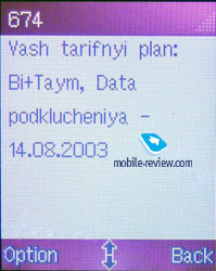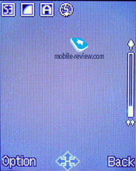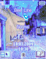 Photos can be viewed as thumbs (three photos are displayed at the same time) or full-screen. About 1.5 MB are kept for photos. Unfortunately, a cable to connect to a PC is not shipped with the device in the kit, that's why photos and clips are impossible to show. To tell the truth, on the phone screen photos look fittingly. Network. Access to SIM-menu and WAP is hidden here. WAP version 2.0 is installed.