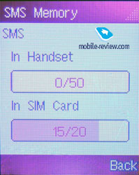 Messages. Generally, up to 50 text messages may be kept in the phone's memory. Entering messages makes no problems, and concatenated ones are supported (longer than 160 characters in Roman letters). You can edit any of the 8 preset templates. Both EMS and group message are not supported.