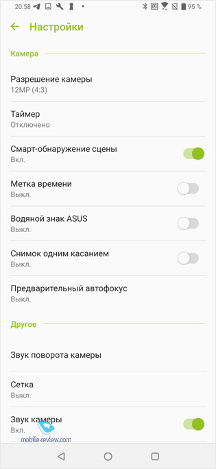 Присутствуют лазерная автофокусировка и двойная светодиодная вспышка. Как вы могли заметить, в Zenfone 6 используется сенсор IMX586 от Sony, который применяется почти во всех современных смартфонах. Поэтому можно открыть обзор, например, Xiaomi Mi9, и прочитать там о качестве снимков. Ничего нового вам не расскажу. Как обычно, днем фотографии выходят вполне приличного качества, ну а вечером вылезают артефакты, и картинка постепенно блюрится из-за подавления шумов. С «шириком» такая же ситуация, правда, там изображение может начать ухудшаться уже при незначительном уменьшении света. Впрочем, отмечу, что в Asus Zenfone 6 нет отдельного режима макро, однако камера способна создавать удивительные кадры, конечно, при должной сноровке оператора. Кроме того, мне показалось, что при цифровом увеличении включается режим 48 МП, то есть кроп берется не из кадра в 12 МП, а из RAW на 48 МП. Модуль с камерами поворачивается при нажатии на специальную кнопку. Более того, его можно перемещать плавно: зажимаете ту же кнопку, только тянете ее вверх или вниз. Довольно оригинально происходит создание панорам: смартфон сам перемещает модуль. Камера умеет делать обычные снимки, HDR+ и HDR++. В последнем случае происходит склейка из нескольких кадров в течение 3-4 секунд. Результат эффектный, но картинка может быть очень шумной. Ночной режим слабый, даже не уровень Huawei P20 Pro или Mate 20. Присутствует режим отслеживания: в этом случае камера перемещается за выделенным объектом. В горизонтальном положении только налево, как вы понимаете. Максимальное качество видео – 4К при 60 кадрах в секунду. Ролики получаются неплохими, но динамический диапазон слегка страдает, то есть либо все выбелено, либо темновато. Оптической стабилизации нет, только цифровая, но она довольно эффективная. Впрочем, из-за цифрового «стаба» картинка сильно урезается, даже запись на широкоугольную линзу выглядит так, будто съемка была на обычный объектив.