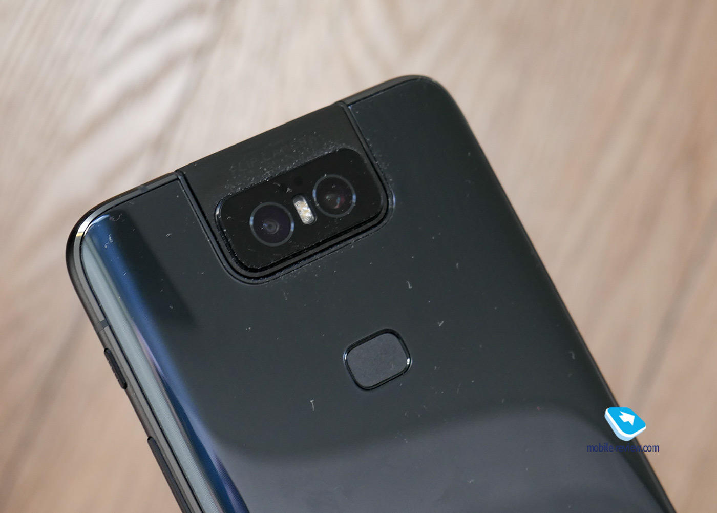 Ёмкость аккумулятора меня также поразила, даже не вспомню, когда в последний раз видел 5000 мАч во флагманском смартфоне. Зато регулярно вижу комментарии вроде «да сделайте вы смартфон чуть толще и поставьте нормальный аккумулятор!». Может быть, разработчики Asus почитывают наши комментарии? При этом есть и поддержка быстрой зарядки Qualcomm Quick Charge 4.0, и соответствующее зарядное устройство идет в комплекте со смартфоном. А вот беспроводной зарядки у Zenfone 6 нет. КамерыПереходим к самой интересной фишке смартфона — двойной поворотной камере. Как это работает: по умолчанию камера находится сзади, но если вы хотите сделать селфи и нажимаете на соответствующую кнопку, то камера разворачивается на 180 градусов. Помимо того, что это потрясающе эффектно выглядит, это еще и эффективное решение: вы сможете получить для селфи-портретов всю «мощь» основного модуля.