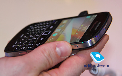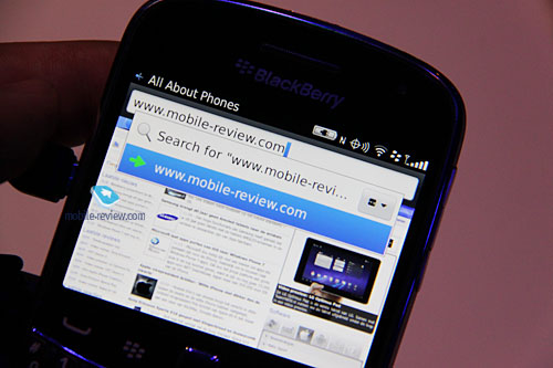 Design. MaterialsThe phone looks very much like the first Bold only thinner. The company made a big stress on the fact that it is the first Blackberry only 10.5 mm (0.4 in) thick. The phone dimensions are 115õ66õ10.5 mm, weight 130 g/4.5x2.6x0.4 in, 4.6 oz. The phone feels good in hand and just as all Blackberries are designed to be easily operated single-handedly this one is also up to the job. I liked the assembly quality and the metal rim on the sides. The back side is covered with soft-touch plastic and I think it is pretty scratch resistant. There is no leather or its imitation here – the panel is now made of carbon fiber. Phones rarely feature carbon fiber parts – Nokia became the pioneer of it in Nokia 8800 Carbon Arte, there also have been a bunch of other phones but it is definitely not mainstream. Blackberry tried to preserve the heritage and make the phone look unique in the same time. I think they have succeeded this phone immediately catches your eye and feels great in hand. ![]() ![]() ![]() ![]() Back to the table of contents >>> DisplayThe screen size is 2.8" with the resolution of VGA – 640x480 and the matrix can display up to 16 million colors. The view angles are very good, the picture is sharp (287 dpi). The screen uses a TFT matrix, it is capacitive and supports multitouch. ![]() ![]() In the settings you can adjust the sensitivity of the screen in case you find the screen responsiveness inappropriate. My impressions of the screen are very positive – light strokes and immediate response. There is no vibration response of the strokes and there is no need for it in this phone. The quality of the image is partly the work of the integrated graphical accelerator that provides 60 frames per second presentation in the interface. This screen even has a special name – Liquid Graphics – the combination of the accelerator and the screen that produce the picture. I had an opportunity to compare Nokia E6 and Blackberry 9930. The phones feel similar only in the first instant then you realize how much slower the Nokia is and how different the interface are. Liquid Graphics is comparable to screens of top Androids and Apple iPhone 4. ![]() I must make a note here – Liquid Graphics is both a hardware and software solution – you cannot upgrade your old Blackberry to OS 7.0 and get better performance. The performance and the screen are big advantages of this phone. I doubt anyone will be using this screen to watch movies – the screen's size and aspect ratio are not appropriate for this, but it is still possible. Back to the table of contents >>> ProcessorBlackberry explained the use of a single core 1.2 GHz processor by saying that they wanted to get the best performance to battery life time ratio. That is why there is no dual core processor models – they will be released later but they are not a Blackberry's priority for 2011-2012 but rather an option for those who is willing to sacrifice the battery life for better performance. The phone is speedy and is on the same level as other new smartphones. The system memory equals 768 MB. ![]() ![]() ![]() Back to the table of contents >>> NFCThis is the first Blackberry with NFC. It supports tag reading – you can watch the demo video to see how it works. Back to the table of contents >>> Augmented realityThe phone features magnetometer and API for geo tags processing. It will be shipped with Wikitude – an application that allows you to read tags of objects by means of the phone camera. It was not installed in the demo handset so I could not try it. Back to the table of contents >>> BatteryThe Capacity of the battery is 1230mAh which is lower than in the previous models. But the company reps told us that thanks to OS 7.0 the battery works just as long. Well, you have to test that one – I cannot comment on these numbers. ![]() Back to the table of contents >>> Key PadThe same optical trackpad as in other Blackberries and it is still handy. There is no shake control while the key pad is even better than on the first Bold – rapture and ecstasy. I loved it: big keys, well set apart soft easy strokes – even typing big texts is easy. I think I will not be exaggerating when I say that this is by far the best QWERTY key pad on the market. ![]() ![]() ![]() ![]() ![]() ![]() Back to the table of contents >>> CameraI did not have an opportunity to copy the pictures from the phone but on the phone screen they look very decent. The flash is rather regular – no improvements here. You can now record video up to 720p. I have got an impression that the camera was improved but don't be expecting a breakthrough. The camera module also features autofocus. ![]() ![]() Back to the table of contents >>> Software Changes and Blackberry OS 7.0The interface has been slightly changed though only superficially. The phone has a preinstalled copy of Docs to Go and an updated Facebook client. The difference from other social networks clients is that Blackberry made push messages available – now these messages are grouped together with other messages in a common mailbox – a nice touch for those who is frequent on Facebook. ![]() ![]() ![]() The search function has now been supplemented with voice search and it works just fine. The browser now features hardware acceleration in the form of JIT – one of the fastest compilers on the market. It felt like the phone I tested was optimized to work with certain websites – at your first visit of a website the browser analysis the page which takes some time. But the next time you hit this page it opens almost momentarily. The browser supports certain HTML5 specification elements – HTML5 Video for example. ![]() ![]() The Blackberry OS now has the Balance feature – it is a security policy: you can prohibit the use of data from office applications (mail, IM etc.) in other applications. For example, you won't be able to Twitter anything toy have received by mail, or forward a message you hav