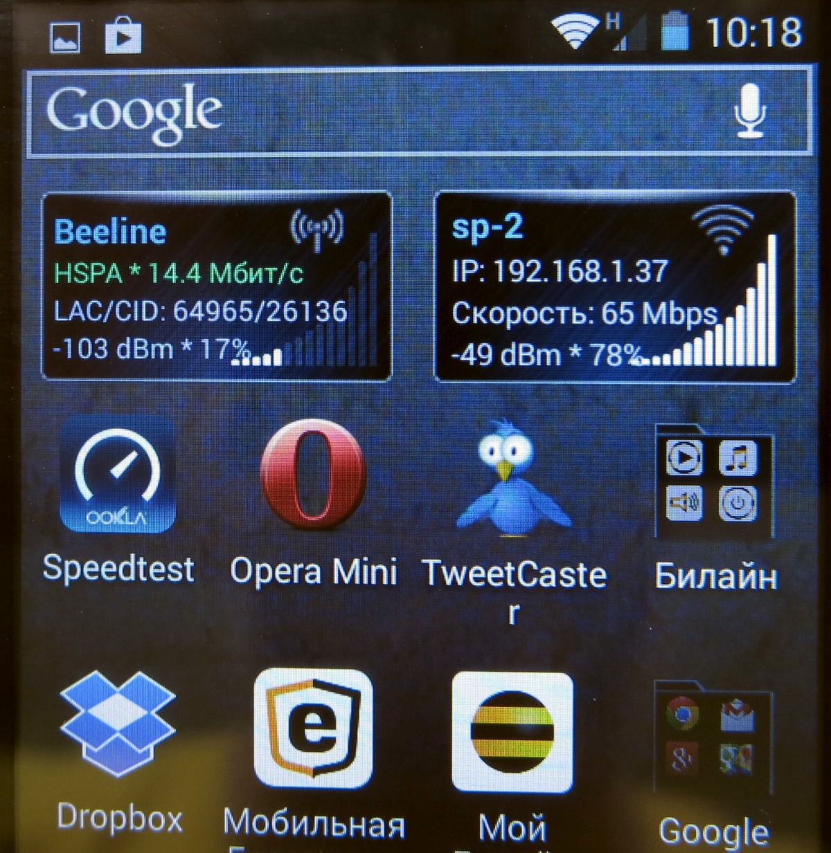 Впечатления от работыОсобых претензий к радиоблоку сотовой сети у меня нет, работает исправно. И данные принимает-передаёт шустро, показатели спидтеста примерно соответствуют таковым на других смартфонах в сети Билайн на том же месте. Единственная тонкость — время переключения из 3G в 2G и обратно. Насторожила некоторая «задумчивость» аппарата при переходах, мог бы и побыстрее переключаться. Но на сугубо личных ощущениях не настаиваю. Модуль Wi-Fi ничем не удивил. Чувствительность средняя, подключается к сети быстро, каких-то необъяснимых фокусов с «выборочным» обнаружением сетей в эфире я не видел. К работе мобильного ТВ претензий нет. Время первичной загрузки списка каналов с «превьюшками» сильно зависит от скорости передачи данных в сети 3G, ожидание может растянуться и на минуту-полторы. Но «зацепив» поток, работает ровно, и нареканий к качеству картинки у меня тоже не возникало. То есть, оно таки работает, а не декларирует торжество высоких технологий самим фактом своего существования.