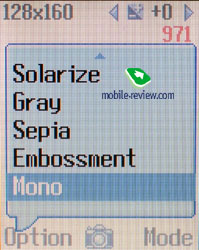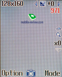 Camera. A VGA camera is integrated; both internal and eternal display can serve as a viewfinder. While shooting you can see the information about the resolution, contrast settings and zoom on the internal screen. Contrast is adjusted by horizontal navi joystick deviations, and zoom is set by vertical movements. The main camera settings are accessible by pressing the left functional key. Select of the following resolutions 96x64, 128x128, 128x160, 640x480 pixels. You can use any of picture compression types and one of 6 effects. There is an 8x digital zoom. The quality of the pictures taken is average, you should not expect more from a VGA camera.