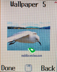Video capability is present. Record in two resolutions - 94x64 and 128x128 pixels. You can watch video only on the phone screen, you can't send it to a PC. Taken photos can be either viewed as thumbnails or one after one. In the album you can apply one of the 5 preset frames, a small picture or rotate the image. Besides, there are two extra editors; they are Face Morph (a capability to apply effects in the chosen points) and Face Dressing (a capability to put animated frames in the points). ImpressionsWe have no complaints of the connection quality. The loudspeaker volume is low; it is almost unheard in a noisy street. The 40-tones polyphony sound averagely, though the volume is high, it's hard not to hear the signal. The vibra is average in power.