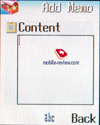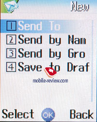 Сообщения. Аппарат поддерживает работу с EMS, в телефоне есть набор небольших картинок, анимаций и мелодий. Также имеется набор шаблонов, с возможностью их редактирования. Отправка сообщений возможна как и одному так и нескольким абонентам, есть возможность сделать рассылку по группам. Также есть и SMS чат, аналогичный таковому в аппаратах Sony Ericsson. Вы вводите свой ник (псевдоним) и номер вызываемого, далее все сообщения будут отображаться в одном окне.