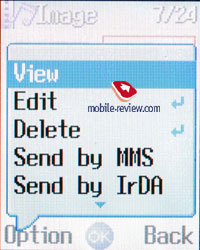 При слабой освещенности увидеть что-либо на дисплее нет возможности, снимки приходится делать буквально на ощупь, это в равной степени относится как к внутреннему, так и к внешнему дисплею. В альбоме фотографии можно просматривать списком, по одной или в виде миниатюр (4 снимка одновременно). Кроме этого имеется возможность просмотра всех фотографий в режиме слайд шоу.