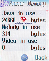 Есть и возможность снимать видео в четырех разрешениях: 96х64, 128х128, 176х144 и 352х288. Видео ролики записываются в формате MP4, качество роликов стандартное, для подобных аппаратов. При проигрывании роликов на телефоне видимых притормаживаний нет, все довольно гладко.