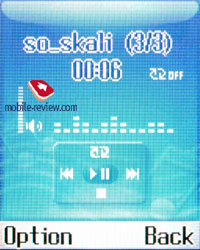 Развлечения. Здесь находится МР3 проигрыватель, с возможностью создавать простой плей-лист. Из дополнительных функций можно установить только цикличное проигрывание композиций. В закрытом состоянии, на внешнем дисплее телефона отображается только имя композиции, управление плеером боковыми клавишами не предусмотрено, для этого придется открывать аппарат. Русские имена тегов отображаются без проблем, композиции воспроизводятся с любым битрейтом. Проигрыватель может работать в фоновом режиме.
