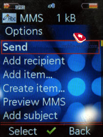 While creating a new SMS user can insert various text templates, entries from the phonebook, organizer, and also music files or video clips. Depending on the added content, a message may transform into a MMS. A photo, text, video, sound and contact can be inserted into MMS message; this means that all basic functions are present. Photo and video recording can be done directly from MMS editing menu. Maximal size for MMS message is 195kb. Besides you can limit MMS by 95kb (a lot of network operators are limiting the size by 100kb), another separate option – maximal size allowed by network operator.