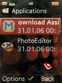 On an incoming call, the media player automatically pauses and once you finish conversation, it continues playback from exactly the same point where it was interrupted. Some pros of the new edition: from this point on the phone is armed with Shuffle function, unseen in the previous devices. Though the developers decided to follow a tradition and excluded equalizers from the media player. Playlists are still capable of holding up to 25 tracks, moreover you can select an entire folder on a memory card on no account – on the contrary you will have to deal with selection of tracks one by one. Nonetheless the player may be minimized, however neither track’s title nor remaining time are not displayed on the home screen. Without any doubts we can declare that they are actually working on media player’s improvement, nevertheless the work advances too slowly. In our firmware version, the media player seemed pretty bug packed – for some reason incoming call’s number didn’t pop up on the display sometimes, even though the application wasn’t minimized. I do hope the manufacturer will do its best to eliminate this drawback by the time the phone appears in retail stores. If I needed to add a few concluding words, I would say the functionality of the given media player is rather poor as compared to products by some other manufacturers – it’s just a set of basic functions with no extras. Extras. Here a few items found their home – the first of which is “My applications”, where pre-installed utility, namely Download Manager and Photo Editor reside in. «Photo Editor» offers a powerful mobile graphic editing toolkit, although I bet only fans will call up this app on regular basis, since it takes loads of time to get used to and work with. And should you need to modify a picture, you better use your home PC.