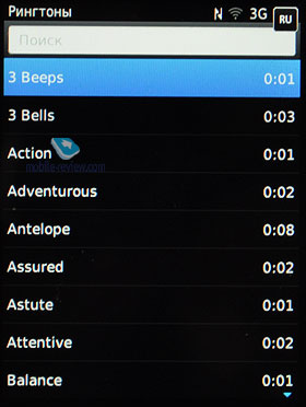 Контакты – количество ограничено, наверное, только свободной памятью аппарата. Множество полей, всё удобно. ![]() Браузер – поддерживаются дополнительные вкладки (я открывал ради эксперимента около 30 штук, аппарат не ругался). Страницы загружаются быстро, если не мучать девайс открытием пары сайтов одновременно, всё хорошо. Радует то, что он работает и через Wi-Fi, и через 3G. На таком маленьком экранчике, понятное дело, о нормальном просмотре Сети речи не идёт, но пользоваться встроенным браузером удобно. Кстати, в AppWorld есть Opera Mini.