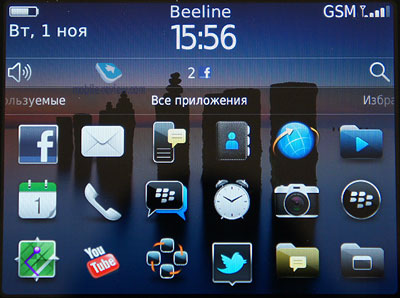 ![]() ![]() На многофункциональную кнопку на правом торце по умолчанию назначен запуск камеры, снимать можно, нажимая на кнопку на дисплее, либо на оптический джойстик. Панели, производительность, ОСВ видеоролике вы можете познакомиться с операционной системой поближе, я все хочу сделать подробный обзор возможностей ОС, но все больше сомневаюсь в необходимости такой статьи. Дело в том, что в RIM называют данную операционную систему OS 7, в BB 9900 используется именно она. По сравнению с OS 6 изменений не так уж и много, добавили поддержку NFC, улучшили дела с графикой (стандарт Open GL ES 2.0 поддерживается), запись видео в HD, только с автофокусом еще бы разобрались, компас и прочее, не тянущее на новую версию. Была же OS 6, ну назвали бы ее 6.1 или 6.2, как делают в Apple. В конце концов, здесь нет огромного шага вперед, скорее, допиливание старого. Например, не изменилась ситуация с панелями. В Blackberry есть непонятная простому человеку система рабочих столов, где есть основной рабочий стол, выдвигающийся из нижней части экрана. Тут ярлыки программ, можно перемещать их как угодно плюс убирать из панели «Все приложения» в, скажем, «Мультимедиа». Итак, эти вот панели вы должны, по идее, составить самостоятельно. В избранное что-то добавить, в мультимедиа, в загрузках видны загруженные файлы, в часто используемых - часто используемые утилиты. Только где логика, если есть «Избранное»? Зачем панель «Часто используемые»? Пояснить не возьмусь. Нет никаких виджетов, мало того, система все больше напоминает старый добрый Symbian прошлых лет. Расширенные настройки профилей, расширенные данные по состоянию устройства - но виджетов нет, максимум, на что можно рассчитывать, это на строку уведомлений на главном экране. Так и здесь много странного, вот уже месяц висят два уведомления Facebbok, а чего они там висят, понять не могу. Убрать не получается никак.