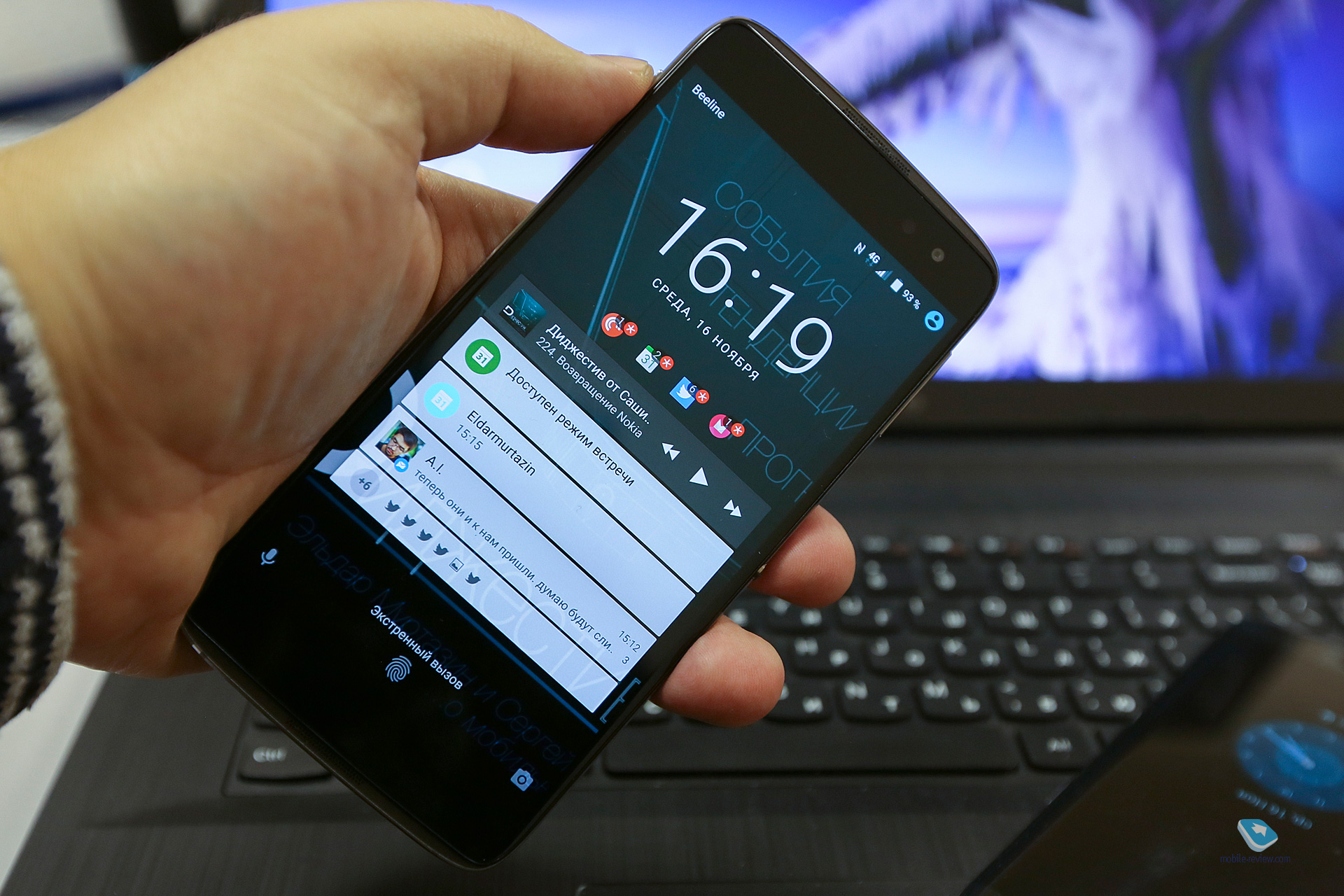 По качеству сборки никаких нареканий на аппарат нет, все на уровне лучших производителей. Датчик отпечатка пальца находится на задней панели. Не буду судить о том, удобно это или нет, привыкнуть к такому расположению можно. Из минусов отмечу то, что датчик не всегда срабатывает, часто загрязняется. У Alcatel пока небольшой опыт использования таких датчиков, отсюда шероховатости.