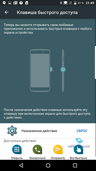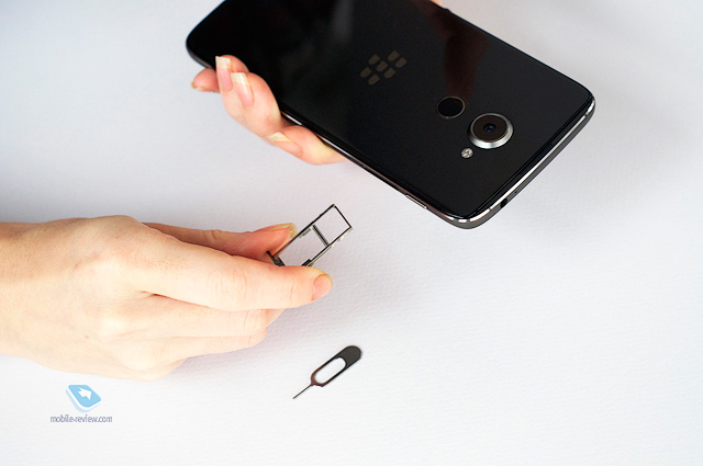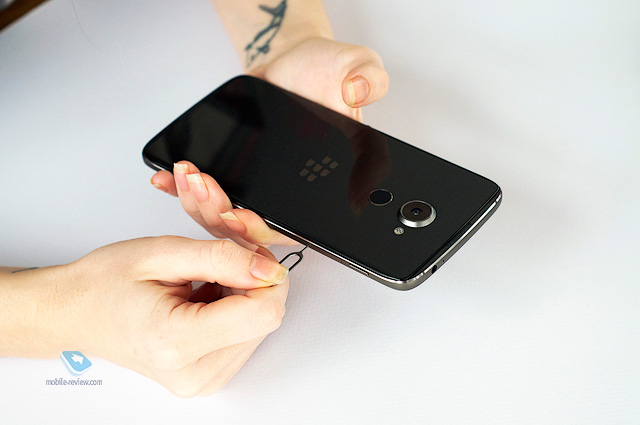 Примерно так же высоко на правой боковой стороне находится спаренная клавиша регулировки громкости, это расположение неудобно. А вот ниже вынесли отдельную кнопку BlackBerry Convenience Key, которая может быть многофункциональной. Обрабатывается как одиночное, так и двойное нажатие. В Alcatel эту клавишу сделали контекстной, ее значение меняется в зависимости от меню, тут этого нет.