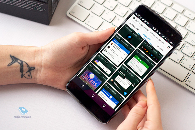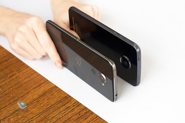 По сравнению с началом продаж DTEK50 есть определенный прогресс, теперь цена не завышается со старта продаж, что можно считать большим плюсом. Для тех, кто интересуется отличиями старшей модели, их можно описать так: более мощный процессор, то же время работы, отсутствие FM-радио, другая камера с большим разрешением и больше диагональ экрана и разрешение, матрица теперь AMOLED, а не IPS. Очень приятный с точки зрения железа аппарат, но он играет в категории китайских флагманов, где существует множество моделей на любой вкус и все они примерно стоят от 400 до 500 долларов, если мы говорим о крупных производителях. На этом фоне Blackberry выделяется только наличием собственных приложений, которые расширяют функциональность Android, но нравятся далеко не всем. Это устройство для тех, кто скучает по сервисам Blackberry и по какой-то причине подсел на них. Для остальных модель малоинтересна вследствие стоимости, необходимости изучать софт, а также того, что Blackberry просто непопулярен и считается умирающим брендом. Жаль, но если в Passport и потом в Priv софт дополняли наработки в железе, например, очень громкие динамики, чувствительные микрофоны, то тут мы видим обычный смартфон от Alcatel, в котором много интересных фишек. Но это Alcatel, а вовсе не Blackberry. Как мне видится, именно этот момент многих удержит от покупки такого устройства, так как зачем покупать перепев оригинальной модели? С другой стороны, одним из преимуществ становится безопасность устройства, которой уделили очень много внимания. Как показывает практика, обычному потребителю на это наплевать, что также не говорит в пользу DTEK60 и того, что его будут активно покупать. Дизайн, размеры, управляющие элементыВ отличие от IDOL 4s, здесь используется другой цвет корпуса, но лицевая и задняя панель из стекла. Приятное цветовое решение, неброское, но в жизни, и особенно на свету, хорошо играет.