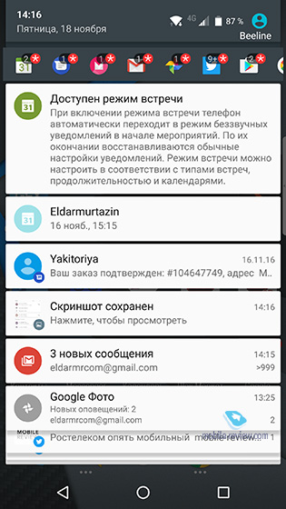 ДисплейДиагональ 5.5 дюйма, 2560x1440 точек, AMOLED. Также как и у всех производителей, здесь используется матрица от Samsung, которая отстает по характеристикам от флагманов южнокорейской компании на пару поколений. Также тут нет дополнительных режимов энергосбережения, связанных с работой экрана. Но это качественная матрица, которая хорошо ведет себя на солнце, в помещении картинка и вовсе отлична. Настройки регулировки подсветки типичны, работает эта регулировка хорошо. Для своего ценового класса дисплей отличен и идеален для просмотра фильмов. Не хватает яркости на улице, в режиме съемки на камеру экран часто темноват, это известный минус для подобных дисплеев.