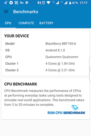 Операционная система, клавиатура и производительность для делаСмартфон работает на операционной системе Android 8.1.0. Обновление до «Пирога» обещают в 2019 году, но, вообще, Blackberry – это не тот производитель, кто оперативно выкатывает новые версии ОС, в отличие от заплаток безопасности: