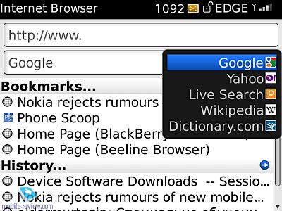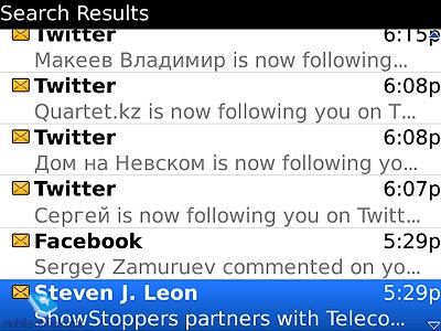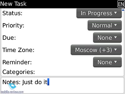 ![]() ![]() ![]() ![]() ![]() ![]() ![]() Дополнительная тема главного экрана Тема называется Precision и включает в себя все дела для текущего дня. Не слишком интересный вид отображения, но возможно, что кто-то сочтет его интересным. ![]() ![]() ![]() ![]() ![]() ![]() ![]() Улучшенный поиск При вводе текста аппарат моментально начинает искать вхождения букв, слова в памяти. Поиск можно проводить по всем разделам телефона. Скорость поиска увеличена, и это визуально заметно. Геометки в фотографиях и слой в картах Открывая карту, вы можете включить отображение слоя со своими фотографиями, тогда они будут отображаться на карте в виде миниатюр. Для этого необходимо также, чтобы в Камере было включено сохранение геометок. ![]() ![]() ![]() ![]() ![]() ![]() ![]() ![]() ![]() ![]() ![]() ![]() ![]() ![]() ![]() ![]() ![]() SMS Chat UI В списке SMS теперь можно просматривать диалоги, представленные в виде чата. ![]() ![]() ![]() ![]() ![]() ![]() Основные особенности интерфейсаНа первый взгляд, в Blackberry ровно тот же интерфейс, что и в обычных телефонах. Но это не так. Все ориентировано на пользователя, который потратит время на изучение ярлыков, настроит телефон для себя, чтобы в итоге тратить на рутинные операции минимум времени. Например, каждую функцию или программу, номер телефона можно назначить на клавиши QWERTY-клавиатуры, что позволяет вызвать их в одно касание. Ровно так же меняются профили. На главном экране есть ярлыки для пяти приложений, их можно менять по своему вкусу. Долгое удержание клавиши домика показывает запущенные приложения, между ними можно переключаться. Двойное нажатие на клавишу домика аналогично ОК. Например, у вас открыто письмо, нажав два раза на домик, вы отправите его. ![]() ![]() ![]() ![]() ![]() ![]() Телефонная книгаВ общем списке вы видите все имена, а также группы абонентов. По умолчанию каждое имя и фамилия имеют также вторую строчку – компанию, в которой работает человек. В списке можно применить фильтр категорий, по умолчанию их две – деловая и частная. Но вы вольны добавить такое число категорий, какое хотите. ![]() ![]() ![]() ![]() ![]() ![]() ![]() Поиск работает очень быстро даже при большом числе контактов, достаточно начать набирать буквы имени, чтобы началась фильтрация списка. Сортировка поддерживается по имени, фамилии или компании. В настройках можно разрешить дублирование имен, тогда одного и того же человека можно отнести к разным категориям. Заполнение имени вполне стандартно – имя, фамилия, обращение, фотография, компания, должность, электронная почта (до 3-х адресов), несколько типов номеров телефонов, своя мелодия на звонок, рабочий адрес со всеми полями, то же для домашнего, день рождения с установлением напоминания в календаре, веб-страница, заметки. ![]() ![]() ![]() ![]() В журнале операций можно просмотреть всю историю общения с конкретным человеком – почта, SMS, звонки и так далее. Очень удобная функция, для которой также нет аналогов на обычных телефонах. Так же, как в календаре, при наличии двух записей электронной почты может быть две адресные книги, между ними можно переключаться, а можно искать контакты в объединенном списке. ![]() ![]() ![]() ![]() ![]() ![]() ![]() Список вызововИз списка вызовов можно не только звонить и видеть пропущенные звонки, как это привычно по большинству обычных телефонов, отсюда вы можете набирать имя абонента, и вам будет показан его номер. Фактически, телефонная книга интегрирована со списком номеров. ![]() ![]() Для