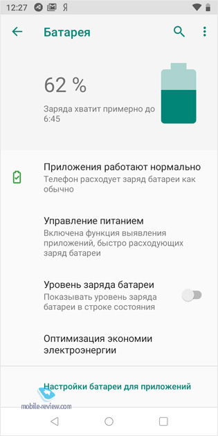 С играми все хорошо, однако стоит понимать, что это вам не Snap 855, поэтому графика выставляется на минимальные значения. В PUBG играть можно. Смартфон BQ Strike Power Plus работает под управлением операционной системы Google Android версии 9.0. Этого вполне достаточно для недорогого решения. Даже если не будет обновления до 10-ки, то печалиться не стоит: все равно эту версию системы в 2019 году получат единицы устройств. Фирменная оболочка отсутствует, что хорошо. Однако какие-то мелкие изменения компания BQ все же сделала: там иконки поменяла, здесь меню дорисовала. В общем, не принципиально. И еще, в аппарате присутствуют несколько сторонних приложений, удалить их не составит труда. КамерыВ данной модели установлены две камеры: основная на тыльной стороне (13 МП, диафрагма f/2.2) и фронтальная там, где ей положено быть (5 МП, f/2.8).