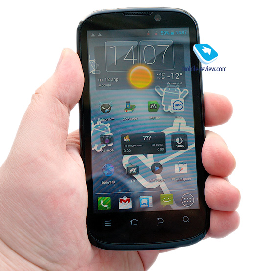 У экрана хорошие углы обзора, при сильном отклонении лишь слегка уменьшается яркость картинки, в остальном же – никаких претензий. Что касается пикселизации, то ее видно при использовании клавиатуры Swype (линии у букв толще), в остальном же она практически незаметна. С такого экрана удобно читать, проверять почту и твиттер, смотреть видео. ГабаритыПо меркам современных смартфонов, Digma iDxD4 довольно компактен. Благодаря этому вы можете с легкостью удерживать и использовать смартфон одной рукой. Толщина и вес iDxD4 находятся в пределах комфортной нормы. То есть смартфон не самый тонкий и легкий, но в тоже время не ощущается тяжелым и толстым кирпичом.