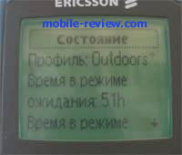 Несмотря на то, что экран у этой модели достаточно большой и с изумрудной подсветкой (аналогично Т28) и позволяет отображать до 5 строк текста, все меню на нем не помещается и приходится прокручивать его вниз с помощью стрелки. Каждому пункту меню и подменю соответствует свой номер, и, войдя в меню, можно просто набрать цифровую последовательность, чтобы открылся нужный пункт. Несомненным удобством является возможность назначения до 4 пунктов меню для быстрого доступа. Так, например, стрелка влево при долгом нажатии выдает список профилей с возможностью выбора нужного. Всего в аппарате 6 профилей и все они могут быть отредактированы пользователем. Что самое интересное, название профилей не стали русифицировать, они так и называются Normal, Outdoors, Meeting, In car, Port H-free и Home. В каждом профиле можно настроить номера телефонов, звонки с которых будут приняты телефоном, в противном случае звонок будет отклонен. Также существует возможность выбора громкости звонка, режима работы вибровызова. Сразу же хочу сказать несколько слов о громкости звонка, которая меня не порадовала. Звонок тихий и его практически не слышно в шумных, людных местах. Виброзвонок спасет положение, но только в случае, если вы носите телефон в пиджаке или джинсах, уже в кармане куртки его не чувствуешь. Всего в телефоне 10 мелодий вызова, но есть возможность создания до 4 своих мелодий, что очень приятно. Мелодии могут быть назначены не только на определенный тип входящих звонков (голосовые, данные), но и для персональных абонентов, всего таких человек может быть до 10. Другая приятная особенность заключается в том, что мелодии могут быть использованы для будильника, который работает и при выключенном телефоне. В остальном, это обычный будильник, который может быть настроен только на определенное время. Несмотря на такой тихий звонок, громкость динамика телефона во время разговора очень велика. На максимальной громкости кажется, что собеседник совсем рядом и буквально говорит тебе в ухо. Другая причина для этого - в чистом звуке динамика. Говорить по телефону исключительно приятно и такие досадные вещи, как шумы, наблюдаются крайне редко. Эффект эха также практически никогда не присутствовал и был только в местах со слабым приемом. А вот чувствительность аппарата достаточно средняя, от бизнес аппарата я ожидал несколько большего. И если R380s работал как часы, то у R320s явно наблюдались проблемы, аналогичные тем, что присутствуют у большинства моделей Ericsson. Здесь я говорю о самопроизвольном выпадении из сети и соответственно невозможности совершать звонки. В зонах с достаточно уверенным приемом, где другие телефоны работали очень неплохо, периодически пропадал сигнал именно у этой модели, затем буквально тотчас же он появлялся снова, но, увы и ах, телефон писал "Только 112". Самое смешное заключается в том, что перерегистрацию в сети проще сделать включением/выключением телефона, иначе ее можно ждать до получаса. Далее еще веселее, на том же месте повторить опыт не удалось с выпадением аппарата из сети, свойство это проявляется самопроизвольно и в различных местах. Сразу же хочу оговориться, что вполне возможно, что это проблема программного обеспечения именно моего аппарата, а не всех телефонов Ericsson R320s, но это кажется мне большой натяжкой, так как и у других моделей наблюдаются по