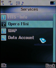 Услуги. В аппарате установлен WAP-браузер версии 2.0. В этот раздел попадает и SIM-меню (при его наличии). Отсюда же можно настроить профили для передачи данных через GSM или GPRS. В этом же разделе доступен браузер Opera mini версии 3.1. По причине очень медлительной работы аппарата с памятью (для наглядности можно открыть фотоальбом, в котором есть несколько снимков) браузер загружается очень медленно. Еще одна проблема заключается в том, что браузер нельзя обновить до 4 версии, так как для этого нужно дождаться появления версии специально для аппаратов Fly, а вот когда это произойдет – непонятно, т. к. на данный момент доступна только версия 3.1.