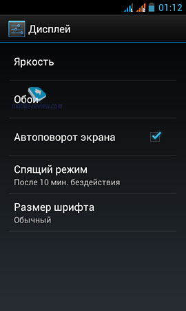 Fly IQ440 и Highscreen Alpha GTR ДисплейВ отличие от старшей модели – Fly IQ441, в которой используется дисплей диагональю 4.3 дюйма, в младшей диагональ экрана чуть меньше и составляет 4 дюйма. При этом тип матрицы и ее разрешение остались прежними: IPS-LCD и 480x800 точек. Естественно, увеличилась плотность с 217 пикселей на дюйм до 233. На глаз разница практически не заметна: и там, и там картинка выглядит резкой. Все современные тачфоны обладают емкостным сенсорным слоем, поэтому Fly IQ440 - не исключение. Чувствительность слоя высокая, отрабатывает до двух одновременных касаний. ![]() Углы обзора экрана большие: под наклонами только немного падает яркость. Цветопередача естественная. Под определенным углом особо зоркие пользователи могут заметить легкий фиолетовый оттенок. ![]() Дисплей Fly IQ440 на свету Для автоматического поворота изображения есть трехосевые акселерометр (BMA222) и магнитометр (YAMAHA530). Настройки стандартные для Android 4.0.