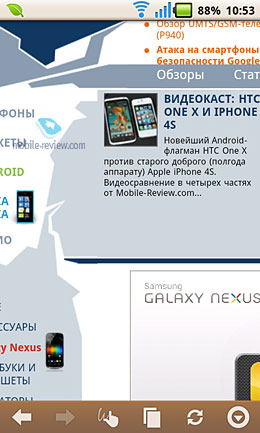 ![]() ![]() ![]() ![]() ПрограммыКроме стандартного софта, установлено значительное количество приложений. Список программ: Altergeo - геосоциальное приложение. ![]() ES проводник. ![]() Facebook – официальный клиент для общения в социальной сети. FBReader - свободная программа для чтения электронных книг в различных форматах. Gmail. Google Talk. ivi.ru - российский видеосервис, специализирующийся на трансляции полнометражного легального видео и аудиозаписей. ![]() SPB TV – приложение, позволяющее смотреть эфирные каналы. ![]() uBank – мобильный банк. ![]() uTalk - мобильная программа, клиент для сетей uTalk, ВКонтакте, Windows Live Messenger (MSN), AOL Instant Messenger (AIM), Yahoo! Messenger, Google Talk, ICQ, Jabber, iChat, Одноклассники.ru, iChat/MobileMe, Gadu-Gadu и Facebook Chat. ![]() YouTube. Карты. Киноафиша. Google поиск. Яндекс. Твиттер. Присутствует несколько простеньких игр. Учитывая неплохую «железную» начинку, играть в подобные игры стыдно. Веб-браузерИспользуется стандартный Android-браузер. В связи с тем, что в аппарате установлен процессор ARMv7, поддерживается Flash-анимация. Браузер работает на Fly Tech не так быстро, как хотелось бы, особенно при значительном количестве «флеш»-баннеров. В просмотрщике интернет-страниц встроено распознавание жестов.