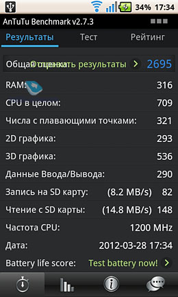 ![]() Тесты производительности Откровенно говоря, практически все синтетические тесты Fly Tech провалил. С чем это связано, остается только догадываться. Quadrant Standart. Набирает около 110 баллов. Очень мало для подобного процессора. Antutu Benchmark. Набирает около 2700 баллов. Результат хуже Samsung Galaxy S и примерно сравним с Sony Ericsson X10. Увы, тест провалил.