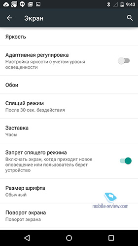 Экран в Nexus 6 – это обычный AMOLED, выполненный по старой технологии, и из этого вытекает ряд ограничений. Яркость и живость цветов, максимальная яркость подсветки. По этим параметрам экран вчистую проигрывает как Galaxy Note 4, так и iPhone 6 Plus – несмотря на различие в типе экранов, они оба ярче, и цвета более живые. В Nexus 6 не хватает яркости, и это проблема типа экрана и его поколения. Технические характеристики экрана при этом отличны – диагональ 5.96 дюйма, разрешение QHD (2560x1440 точек, 493 точки на дюйм). Есть автоматическая регулировка яркости, она неплохо справляется со своей работой, хотя я настроил экран на 45-50 процентов от максимума (в Note 4 поставил около 25-30 процентов, так как там запас намного больше). В Android 5.0 и выше появилась функция Ambient Display, при поступлении сообщения или уведомления оно отображается на части экрана, не загорается весь экран. Также можно, взяв в руки телефон, увидеть все свои сообщения на черно-белом фоне. Это очень приятная особенность аппарата.