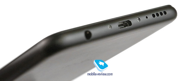 На левой стороне – комбинированный слот для nanoSIM-карт или одной карты и карты памяти. В аппарате два микрофона, они находятся на торцах.