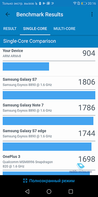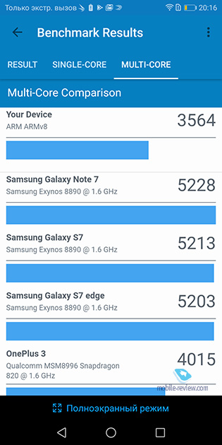 Карты памяти до 256 ГБ, слот комбинированный, поэтому придется выбирать между второй nanoSIM-картой или карточкой microSD. Чипсет HiSilicon Kirin 659 (4x2.36 GHz Cortex-A53 + 4x1.7 GHz Cortex-A53), графический процессор Mali-T830 MP2, его производительность на хорошем среднем уровне, посмотрите на результаты синтетических тестов ниже. Хочу отметить, что никаких притормаживаний в меню нет, аппарат достаточно шустрый. Возможно, визуально не самый быстрый на планете, но очень приятный в обращении. Для тех, кто меняет на этот телефон свой двух-трехлетний смартфон, разница в скорости работы будет видна невооруженным взглядом.
