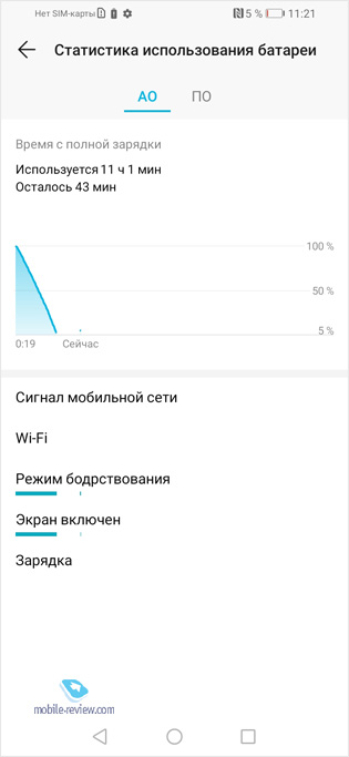Время работыВ Honor 8A разработчики установили аккумулятор емкостью 3020 мАч. Данная цифра вполне стандартна для недорогих устройств. Ввиду использования процессора, построенного на 12 нм техпроцессе, время работы смартфона оказалось на высоком уровне: в режиме воспроизведения видео на максимальной яркости телефон продержался чуть более 11 часов, в режиме игр – 5.5 часа, а WEB-браузинг по Wi-Fi разрядил батарею спустя 7 часов 40 минут! На мой взгляд, результат более чем отличные. Обычно такие данные показывают смартфоны, имеющие на борту аккумуляторы от 4000 мАч.