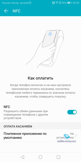 Аппарат Honor 9 «понимает» LTE Cat 4 в диапазоне бендов 1/3/7/8/20. Из примечательного – наличие NFC чипа (но без Mifare Classic и Mifare Ultralight), который не очень часто встречается в подобных гаджетах. Карту «Тройка» Honor 9 читает. Пополнить карточку не получилось. В остальном проблем нет: чувствительность высокая, оплачивать покупки можно.