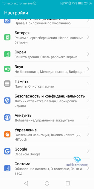 Производительность и ПОВ Honor 9 Lite мы снова встречаем чипсет собственного производства – HiSilicon Kirin 659: 16 нм, 64-битный, 8-ядерный, 4xCortex-A53 2,36 ГГц + 4xCortex-A53 1,7 ГГц. Процессор почти ничем не отличается от предыдущих поколений – Kirin 658/655/650. Разница только в частотах и версиях Bluetooth/Wi-Fi. Аппарат совершенно адекватный, не тормозит, не фризит, не глючит. Пользоваться системой – одно удовольствие. В тесте Antutu набирает около 66 000 баллов. Примерно, как MediaTek Helio P25. С играми Kirin ведет себя нормально: большая часть без проблем запустилась и шла на максимальных параметрах. А на Android есть что-то сложное с точки зрения графики? Смартфон Honor 9 обновили до Google Android версии 8.0, что достаточно круто. Большинство аналогичных девайсов еще на «семерке». Обновили еще и фирменную оболочку: теперь EMUI версии 8.0. Каких-то особенных изменений я не заметил, кроме немного иного оформления настроек: они стали более упорядоченными.