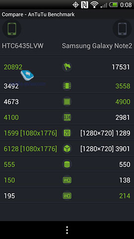 Как я писал выше, у меня было всего два дня на тестирование смартфона, так что замерить за это время должным образом время работы я просто не мог, и единственный тест, на который хватило времени – воспроизведение видео. Мой образец проработал в режиме проигрывания видео почти 7 часов, 6 часов 49 минут, если точнее. Для теста я использовал несколько серий одного из сериалов в качестве 720p. Можно сказать, что честнее было бы тестировать время работы в режиме воспроизведения видео на роликах с 1080p – но это не так. Дело в том, что файловая система смартфона все равно не позволит вам закинуть на него файл объемом более 3.8 ГБ (или около того), так что смотреть на HTC Butterfly фильмы в FullHD качестве будет проблематично. Что касается общих показателей времени работы, то, по моим ощущениям, HTC Butterfly работает дольше, чем HTC One X, но все равно не дотягивает до показателей Samsung Galaxy S III. Однако то, что аппарат живет дольше, чем One X – совершенно точно, а это уже плюс. Платформа, памятьСмартфон построен на новейшей платформе Qualcomm APQ8064 с четырехъядерным процессором частотой 1.5 ГГц (техпроцесс 23 нм), графическая подсистема (GPU) – Adreno 320. Характерные особенности этой платформы – поддержка камер с разрешением до 20 МП, поддержка USB OTG, Bluetooth 4.0 и двухканального WI-Fi. Помимо HTC Butterfly, эта платформа используется в Asus Padfone 2, LG Optimus G/Nexus 4, а также в нескольких еще только анонсированных моделях от Sharp, Pantech и Sony. В HTC Butterfly 2 ГБ оперативной памяти и всего 16 ГБ встроенной памяти для хранения пользовательских данных, из которой доступно после запуска чуть больше 14 ГБ. Слота под карту памяти в так называемой «европейский версии» аппарата, вопреки слухам и представленным на разных сайтах характеристикам, нет. В компании HTC точную информацию на этот счет не предоставляют, но по тем данным, что у меня есть, можно говорить что слота, скорее всего, не будет. ![]() Лично для меня всего 14 ГБ памяти – до смешного малый объем, я забил его спустя 10 минут после включения HTC Butterfly и первичной настройки. Чем? Несколькими игрушками (~2 ГБ), любимой и тщательно отобранной музыкой (~9 ГБ) и парой серий «Игры Престолов» (~2 ГБ). И это без всякого мусора, только те данные, которые мне просто необходимы в смартфоне! При этом я знаю многих людей, которым 14 ГБ хватит просто на год вперед. Например, Валентин, наш верстальщик, так и сказал, что ему 14 ГБ хватит за глаза! Не знаю, кого больше, тех, кто удивится столь малому объему, или тех, кому 14 ГБ будет достаточно, но в одном я уверен – в топовом смартфоне должен быть больший объем памяти, несколько вариантов (16/32/64 ГБ) или слот под microSD для решения всех проблем. В HTC Butterfly нет ни первого, ни второго, ни третьего, и это очень огорчает. Производительность, тестыОбщая скорость работы смартфона отличная, что, честно говоря, меня даже удивило, учитывая огромный дисплей и его разрешение. Рабочие столы перелистываются моментально, задержек и подлагиваний нет вовсе, все меню буквально летает. При большом числе запущенных программ смартфон не начинает работать медленнее или задумываться – словом, скорость работы отличная. Ниже приведены результаты тестирования HTC Butterfly в различных бенчмарках.