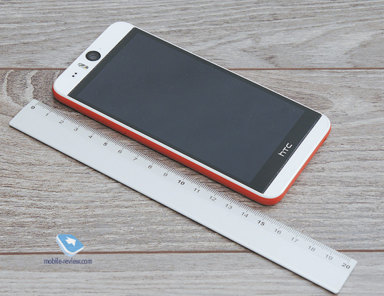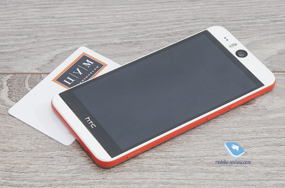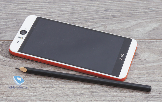 Мы уже писали материал с презентации смартфона, вы можете ознакомиться с ним по ссылке. В обзоре я постараюсь затронуть все основные интересные моменты касательно реализации двух одинаковых камер в Desire EYE, а также расскажу об этом устройстве подробно. Дизайн, материалы корпусаПо дизайну новый Eye похож на другие модели из линейки Desire, в частности, мне он напомнил Desire 816 и 820 – такая же форма корпуса, примерное расположение элементов, а также сочетание пластика разных цветов. Для Eye в компании подготовили две расцветки – белая с вставками красного цвета и темно-синяя с вставками голубого цвета. Мне второй цветовой вариант ближе, но первый тоже очень даже ничего. Изюминка дизайна именно в сочетании двух цветов – основа белая, например, а рамка красная – это очень красивое и, в то же время, спокойное решение, аппарат в такой расцветке не выглядит слишком ярко или пестро.
