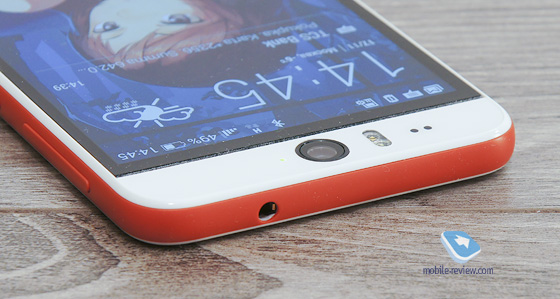 Лично я хочу немного поворчать на дизайн фронтального модуля, прежде чем мы перейдем к обсуждению качества фото. Понятно, что 13 МП широкоугольную камеру на основе BSI-сенсора нельзя скрыть в игольном ушке на лицевой панели, но, в то же время, не очень понятно, зачем было делать вот эту черную рамку вокруг модуля и вообще зрительно увеличивать его? На мой взгляд, в HTC вполне могли (и им это по силам) вписать фронтальную камеру так, чтобы она казалась едва заметной, вместо этого ее сделали максимально заметной, чтобы каждый видел, что у нас не просто фронтальная камера, а ОГО-ГО какая!