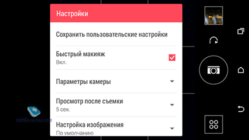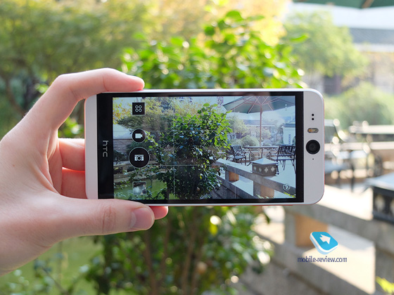 Автоматическая регулировка яркости работает корректно в большинстве ситуаций. КамераИзюминка, главная особенность устройства, да и в целом, одна из новых для смартфонов фишек, доступная в HTC Desire EYE – две одинаковые камеры, основная и фронтальная. Начну с основной. Разрешение 13 МП, BSI-сенсор, 28 мм, f/2.0, сдвоенная светодиодная вспышка, запись видео в FullHD и ускоренном FullHD.